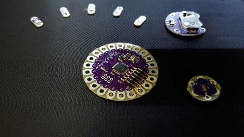 STEP 03. 모듈을 부착한 후 컴퓨터 자수기를 재 작동시켜 전도성 실로 각 모듈 간 Circuit 연결.